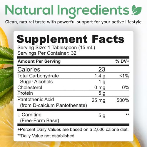 Delicious Citrus Flavor: Enjoy a pleasant daily supplement routine with the all-natural Citrus flavor. The flavor of this L-Carnitine with Vitamin B5 and Glycerin makes it easy to incorporate into your diet without sacrificing taste.