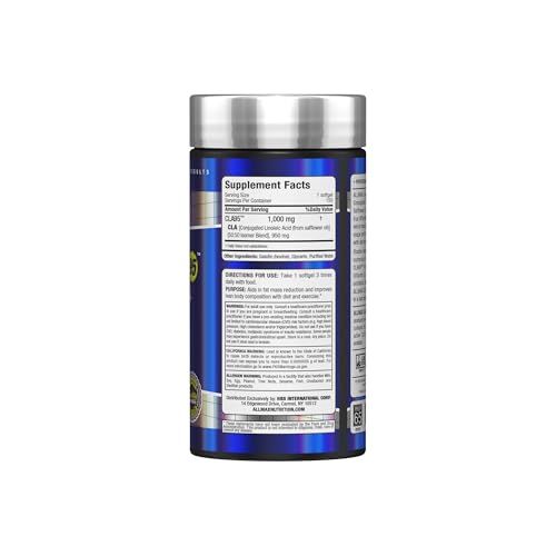 95% PURE CLA: Each 1000 mg softgel contains 950 mg of pure conjugated linoleic acid derived from premium safflower oil, providing high potency and maximum effectiveness. ALLMAX