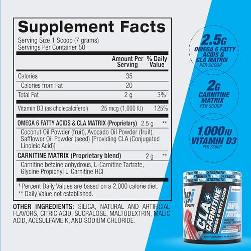 Specification: BPI Sports CLA+Carnitine – CLA L Carnitine & Linoleic Acid – L Carnitine Supplement for Weight Loss, Metabolism & Lean Muscle – Caffeine Free – Rainbow Ice – 50 Servings – 12.34 oz