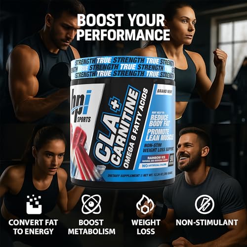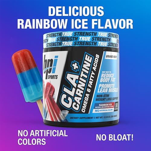 BPI Sports CLA+Carnitine – CLA L Carnitine & Linoleic Acid – L Carnitine Supplement for Weight Loss, Metabolism & Lean Muscle – Caffeine Free – Rainbow Ice – 50 Servings – 12.34 oz