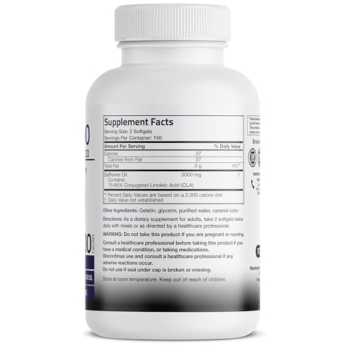 Specification: Bronson CLA 3000 Extra High Potency Supports Healthy Weight Management Lean Muscle Mass Non-Stimulating Conjugated Linoleic Acid 300 Softgels