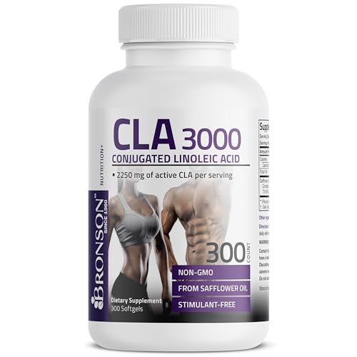 Bronson CLA 3000 Extra High Potency Supports Healthy Weight Management Lean Muscle Mass Non-Stimulating Conjugated Linoleic Acid 300 Softgels