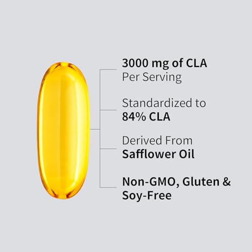 Specification: CLA 3000mg Softgels – Conjugated Linoleic Acid with Safflower Oil – CLA Supplement for Weight Management – Gluten Free – 90 Softgels