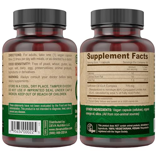Specification: DEVA Vegan CLA 2-Pack – Conjugated Linoleic Acid from Non-GMO Safflower Oil, 90 Vegan Caps Ea