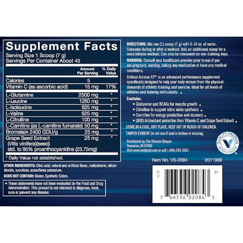 Specification: BODYTECH Critical Aminos XT – Intra/Post Workout Amino Acid Formula – Supports Recovery, Endurance & Performance – Fruit Punch (15.9 oz, 45 Servings)