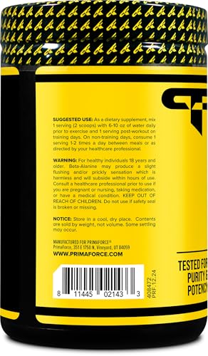 Quality Assurance: PrimaForce Beta Alanine Powder is crafted with quality and purity in mind, providing a reliable fitness supplement for your workout needs.