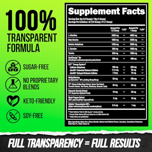 PREMIUM INGREDIENTS: These supplements for men and women are crafted with researched backed ingredients. Pre workout capsule is made with 5 trademarked ingredients that are banned substance free and GRAS (Generally Regarded as Safe). Workout container includes a 100% transparent label