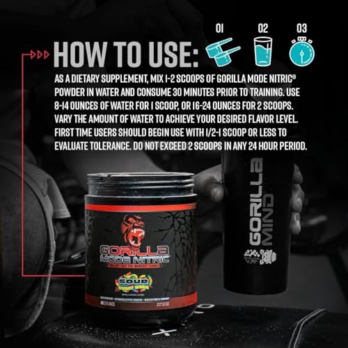 MIXES EFFORTLESSLY AND TASTES INCREDIBLE – With over 40 grams of active ingredients per serving, Gorilla Mode Nitric powder still nails taste and mixability. We use HydroPrime Glycerol and premium flavor systems tested for years to ensure every sip is smooth, clean, and delicious. No grit, chalkiness, or synthetic aftertaste—just massive pumps, peak performance, and a naturally colored pre-workout you’ll actually look forward to drinking.