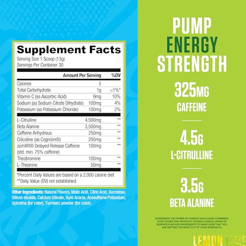 RYSE Loaded Pre Workout Powder – Jell-O Lemon Lime – Daily Pre-Workout for Men & Women with 325mg Caffeine, Beta Alanine, and Citrulline for Pump, Focus, and Energy – 30 Servings