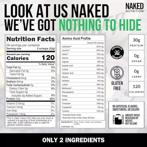 Specification: NAKED Whey Isolate Protein – Only 2 Ingredients, 30g Grass-Fed Protein, Zero Carb, Unflavored, Undenatured, Non-GMO, No Soy, Gluten-Free, No Preservatives – 28 Servings