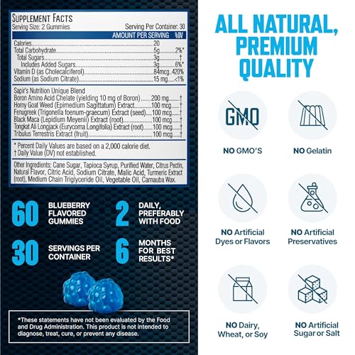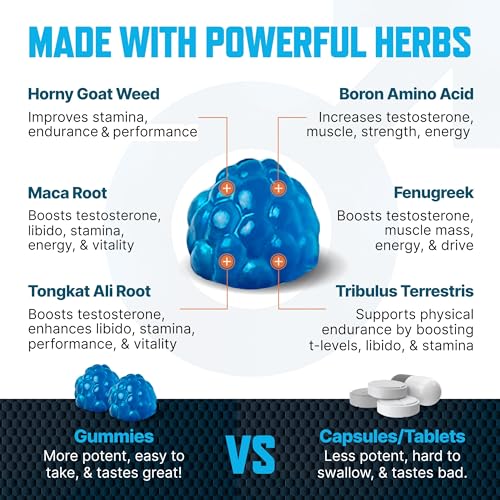 The revolutionary testosterone supplement for men designed to elevate your performance to new heights. Each gummy is packed with natural, powerful ingredients that enhance blood flow, ensuring stronger and longer-lasting training sessions and explosive endurance. By improving circulation, increases nutrient and oxygen delivery to your tissues, promoting growth and potentially increasing size over time. The surge in testosterone levels not only boosts your libido but also powering relentless stamina, allowing you to perform with confidence vitality and vigor.