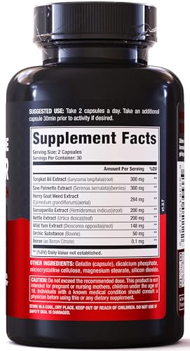 Specification: Testosterone Booster Supplement for Men – Workout, Muscle Growth, Libido, Stamina, Strength, Energy, Endurance – Male Enhancing Supplement Pills – Men’s Test Booster – Tongkat Ali – 60 count – 2-Pack