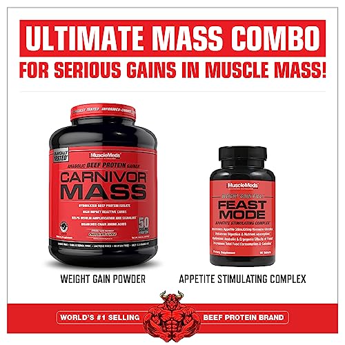 Specification: MuscleMeds CARNIVOR Mass Gainer Beef Protein Isolate Shake, 50 Grams Protein, 125 Grams Carbs, 0 Fat, 0 Sugar, Lactose Free, Halal Certified, Chocolate Peanut Butter, 6 Pound