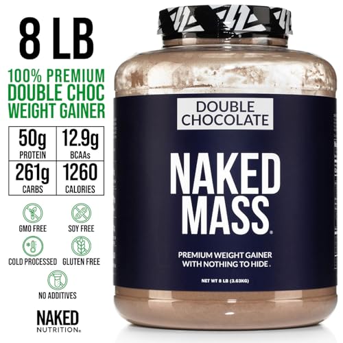 NAKED Double Chocolate Mass – 1,260 Calories, 50G Protein, Nothing Artificial. All Natural Weight Gainer Protein Powder – 8Lb Bulk, GMO Free, Gluten Free & Soy Free