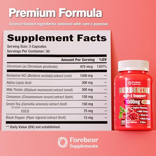 Berberine 1500mg GLP-1 Weight Loss Supplement Pills for Women & Men – Appetite Suppressant with Ceylon Cinnamon, Milk Thistle, Chromium Picolinate, Green Tea & Alpha Lipoic Acid – 90 Veggie Capsules