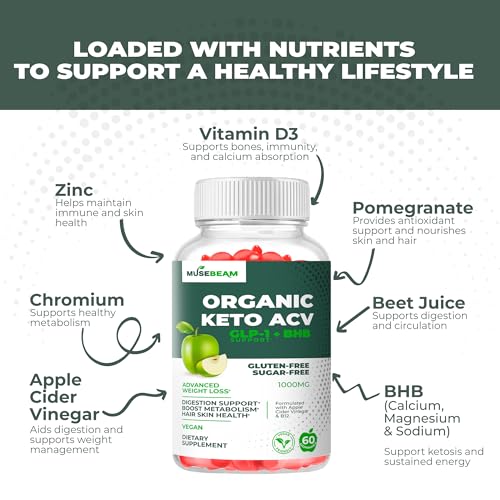 Aid Weight Management: MuseBeam’s Keto ACV gummies aid weight loss by reducing cravings and promoting fullness and enhancing fat metabolism.