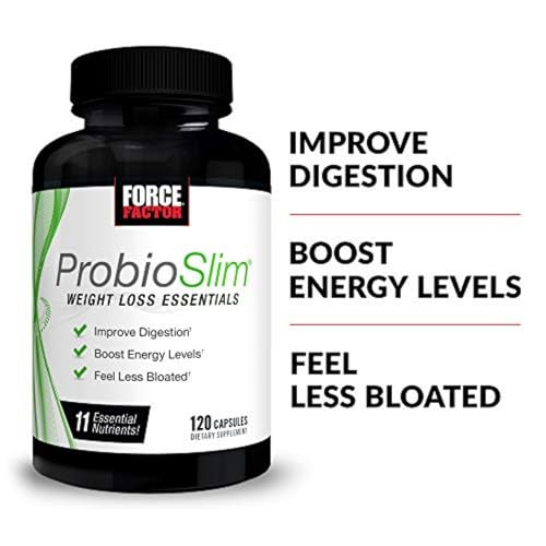 ProbioSlim Weight Loss Essentials Complete Daily Digestive Health and Weight Loss Probiotic Supplement for Women and Men with Electrolytes and Green Tea Extract, Force Factor, 120 Capsules