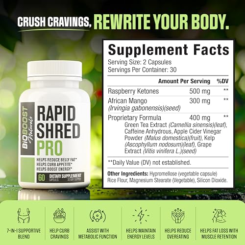 Rapid Shred PRO Series | Supports GLP-1 Pathway Function | Weight Loss Pills for Women & Men | & Fat Burner to Boost Metabolism, Appetite Suppressant| 3rd Party Tested Supplement – 60 Pills