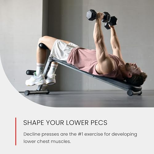 VERSATILE DECLINE POSITIONS – Abs workout equipment to target lower chest and core. Easily adjust the decline to vary the intensity of your sit-ups. Works as a decline gym bench for dumbbell and barbell presses for a total upper body workout.