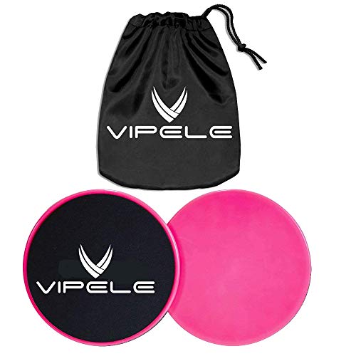 VIPELE Core Sliders. Dual Sided Use on Carpet or Hardwood Floors. Abdominal Exercise Equipment (Pink)