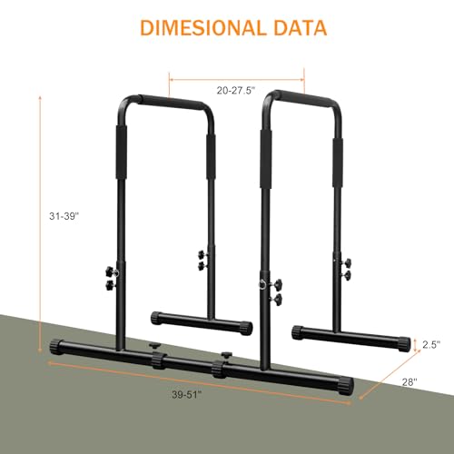 【Adjustable Height】31-39 inch Adjustable Height You can adjust it based on yourself. Perfect for bar exercises, dips, pull ups, push ups, leg raise, bench press and more, works arms, chest, back and muscles.