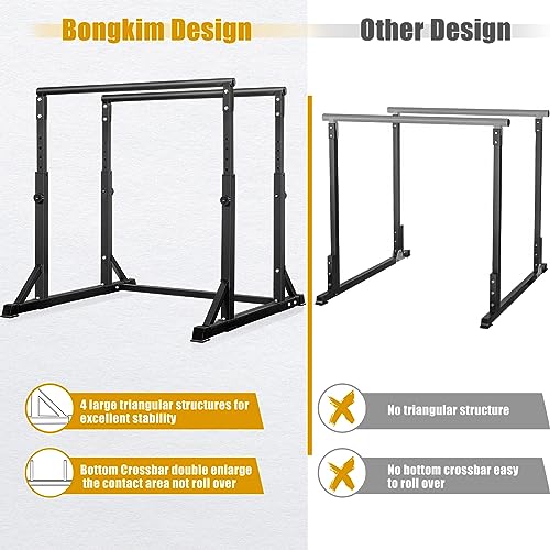Bongkim Dip Bar, Heavy Duty Dip Station with 7 Height Levels, 800lbs Adjustable Parallel Bars for Tricep Dips Pull-Ups L-Sits Calisthenics Exercises Strength Training for Home Gym Outdoor