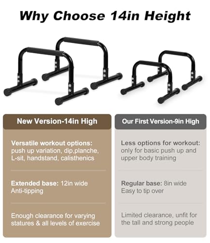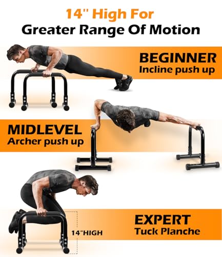 TABEKE Push Up Bar, 14” High Steel Parallettes & Dip Bar with Full Coverage Foam Handle, Heavy-Duty Calisthenics Parallel Bars for L-Sit, Dips, Home Gym Strength Training Workout