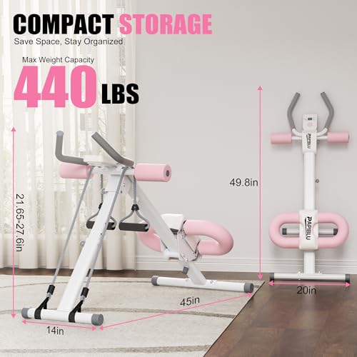 Abdominal Trainers – Adjustable Ab Trainer Machine, Foldable Abdominal Workout Equipment with Knee Protection – Home Gym Systems for Men & Women – Pink