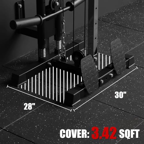 【DESIGNED FOR HOME GYM】Big footboard on the Base-perfect attachment for the seated cable row. Upward 10° of Weight peg can prevent weight plates slip off. It also comes with detachable sleeves to fit 1”/2” plates. Special four buckles strap handles can let you easily adjust the length you want. Also, this machine comes with 3 additional attachments: Lat bar, Cable bar, and Tricep rope.