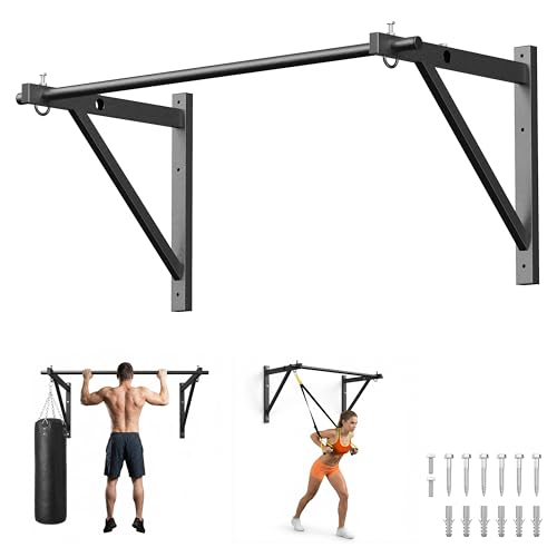 Specification: Pull Up Bar for Doorway and Wall Mount – Chin Up Bars for Home Gym, 39 in / 52 in Upper Body Workout Equipment with 500 lbs Capacity, Portable Thickened Steel Construction, Joist Mounted