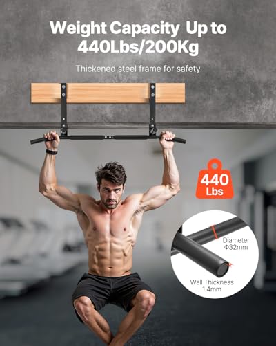440LBS Heavy-Duty Steel Frame: This pull up bar is made from heavy-duty carbon steel with 1.4mm thick powder coating. Rust and corrosion-resistant, with a max weight capacity of 440lbs, ensuring security and stability. Perfect for both home and gym use