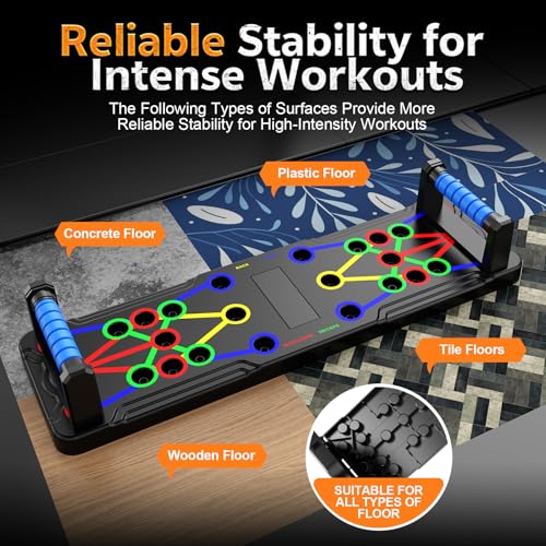Multi-Grip Push-Up System: The Push-Up Board combines ergonomic Pushups bar and color-coded push-up handle positions to target 6 major muscle groups (chest, shoulders, back, arms, abs & core). The workout equipment features 12+ customizable angles with detailed exercise guide and tutorials, delivering professional-grade strength training at home.