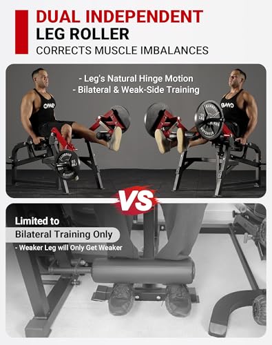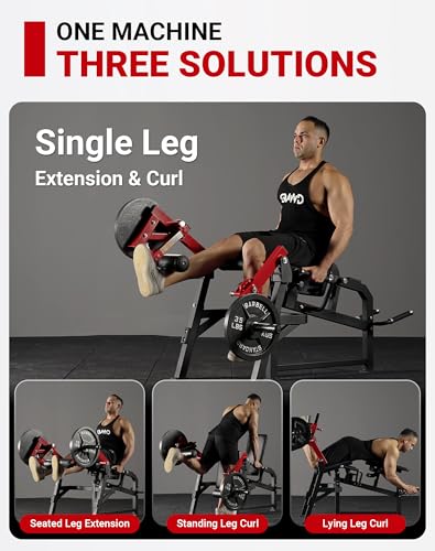 Specification: GMWD Leg Extension and Curl Machine, Single Leg Extension, Lying Leg Curl, Standing Leg Curl, Adjustable Leg Exercise Bench with Plate Loaded, Leg Machine Home Gym, Red