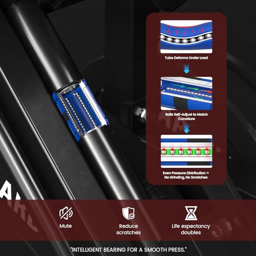 【Enhanced Stability】The linear bearing system (replacing traditional ball bearings) ensures ultra-smooth motion on every rep. Extended-range guide rods accommodate users from 5′ to 6′, delivering optimized stability for all leg day routines.