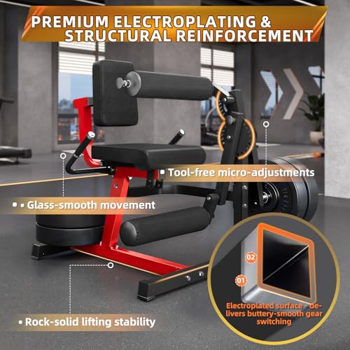Specification: Leg Extension and Curl Lower Body Workout Machine, Heavy Duty Adjustable Leg Rotary Extension Plate Loaded Fitness Equipment for Thigh Home Gym, for 1”/2” Weight Plates with Easy Mobility Wheels