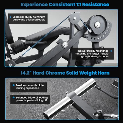 Experience Exercise with Smooth Pulley System: Our Innovative pulley system delivers consistent resistance tailored to the specific strength curve of the targeted muscle group. We specially design an adjustable bolt to regulate tension in case the cable stretches out over the years. You will find pleasure in the seamless resistance during your workout. Plate loading post measures 7.1” per side and fits 2-inch weight plates smoothly with its hard chrome plated surface.