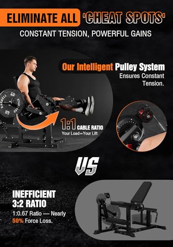 True Constant-Tension Cable System: Aircraft-grade aluminum pulleys ensure buttery-smooth motion and constant muscle tension throughout every rep—unlike traditional gravity-limited leg extension machine that lose resistance. With a true 1:1 cable ratio, the weight you lift is the weight you load, enabling precise tracking and effortless changes. Perfect for shared workouts and relentless gains.