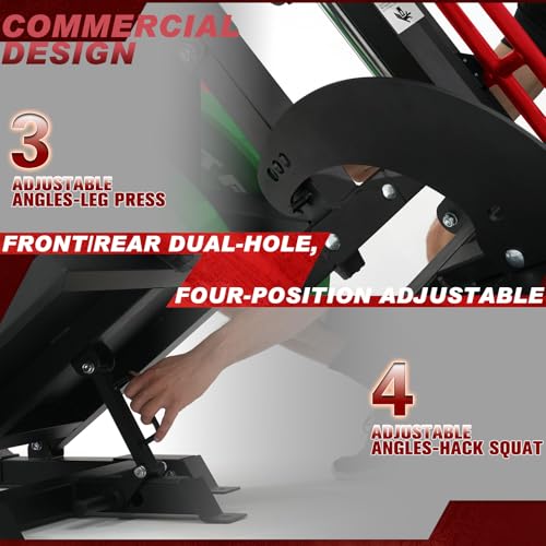 【Flexible Training Options】Maximize your training with versatile settings: 4 adjustable angles for hack squats and 3 for leg presses, designed to fit users of different sizes. Transition effortlessly between exercises by simply adjusting the back pad and leg press footplate.