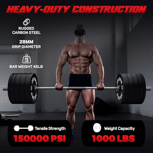 [Durable finish]: The advanced hard chrome coating provides superior corrosion resistance, ensuring your barbell retains its sleek look and performance through years of intense use. Weighing 45 lbs, this 2-inch Olympic barbell is perfect for any home or commercial gym, fully compatible with power racks, cages, and Smith machines in the market