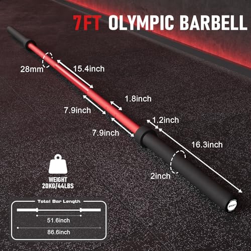 Specification: GarveeLife 7FT Olympic Barbell, Weight Bar For Weightlifting and Powerlifting, 45lb Olympic Bar with Needle Bearings & Brass Bushings, 1500LBS Strength Training Bar Fit 2″ Standard Weights, Red Black