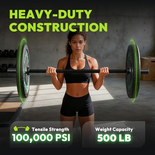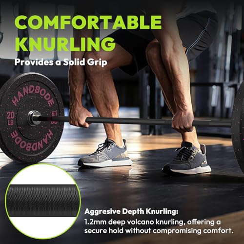 Excellent Load Capacity: HANDBODE 4ft Olympic Bar features a 28mm diameter and 1.2m (4 feet) length. Its needle bearing system ensures a smoother, quieter spin with reliable performance at maximum loads, supporting a weight capacity of up to 500 lbs.