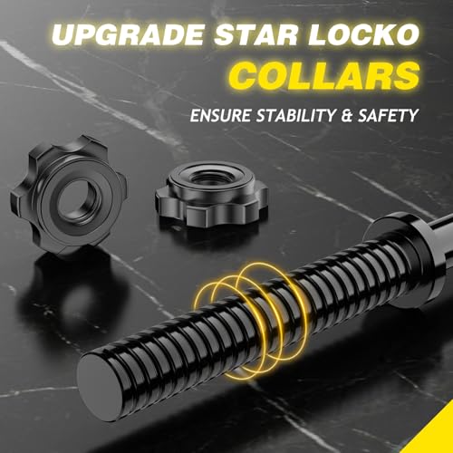 Weight Lifting Bar 57″, 1″ Standard Straight Barbell Bars Olympic for Home Gym Weight lifting/Strength Training/Squat/Bench Press/Deadlift/Lunges/Hip Thrusts, 2 Star Collars (480lb Weight Capacity)