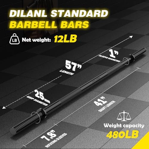 Specification: Weight Lifting Bar 57″, 1″ Standard Straight Barbell Bars Olympic for Home Gym Weight lifting/Strength Training/Squat/Bench Press/Deadlift/Lunges/Hip Thrusts, 2 Star Collars (480lb Weight Capacity)