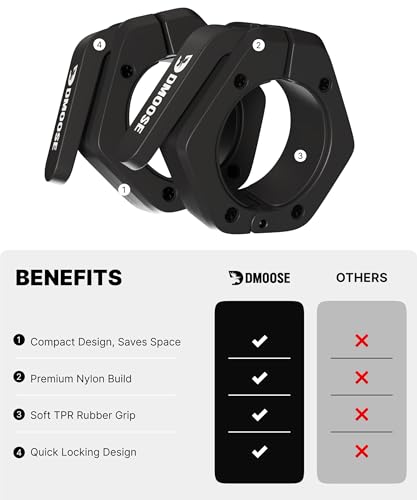 Specification: DMoose Fitness Barbell Clips 2 Inch (Pair) – Quick Release Olympic Barbell Clamps & Collars with Anti Slip TPR Grip for Secure Weightlifting and Powerlifting – Weight Clips for Bars at Home or Gym