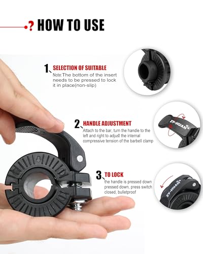 Specification: Pro Barbell Clips 1 inch Barbell Clamps 0.9-1.18inch Quick Release Weight Clips for Bars Multi-Size Adjustable Olympic Barbell Clamps