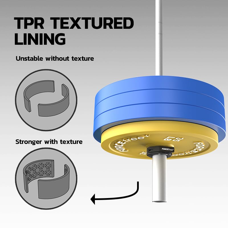 【Non-Slip Locking, Worry-Free Safety】Innovative textured TPR rubber lining provides excellent non-slip performance, ensuring barbell plates are firmly locked, safeguarding your training safety.
