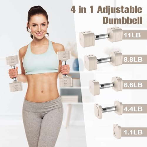 22LBS Adjustable Dumbbells Set, Adjustable Weight Dumbbells with 4 Levels 4.4lb, 6.6lb, 8.8lb, 11lb, Hand Weights Sets for Women/Men Home Gym Full Body Workout