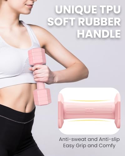 TPU Soft Rubber Handles: The 10 lbs dumbbells set of 2 handles are made of TPU soft rubber, ensuring a secure grip even during sweaty workouts. This non-slip, sweat-resistant design enhances your overall exercise experiences
