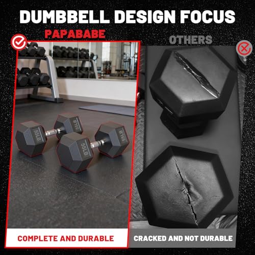 PAPABABE HEX Dumbbell Set 2.5-125lb, Rubber Encased Home Gym Dumbbells, Exercise & Fitness Weights Dumbbells for Women & Men, Hand Weight for Strength Training