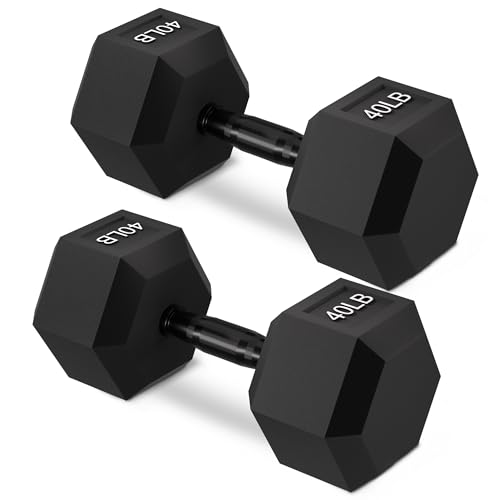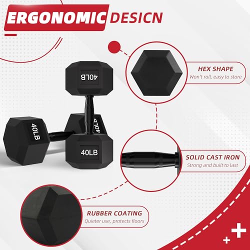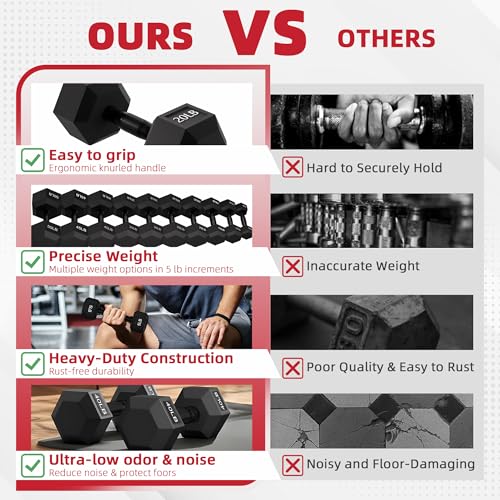 Specification: Rubber Encased Hex Weights Dumbbells Set of 5 – 50 lb Pair | Cast Iron Hand Weights with Anti-Slip Grip for Home Gym Strength Training